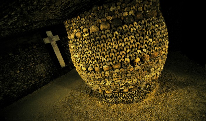 Конец XVIII века стал непростым временем для перенаселенного сверх меры Парижа. Высокая смертность привела к заполнению всех окрестных кладбищ: властям пришлось в экстренном порядке решать, что делать с мертвыми. Заброшенные каменоломни, находящиеся прямо в черте города, были изначально лишь временной мерой - но, как известно, нет ничего более постоянного, чем временное решение. Всего за полтора года количество упокоенных здесь трупов превысило шесть миллионов. Каменоломни принялись расширять, превратив их за короткое время в настоящий лабиринт смерти. Представьте себе территорию в несколько сотен квадратных километров, полностью заполненную смертью. Сейчас небольшой участок этих катакомб открыт для туристов, но ведущие в глубину ходы находятся под серьезной охраной.