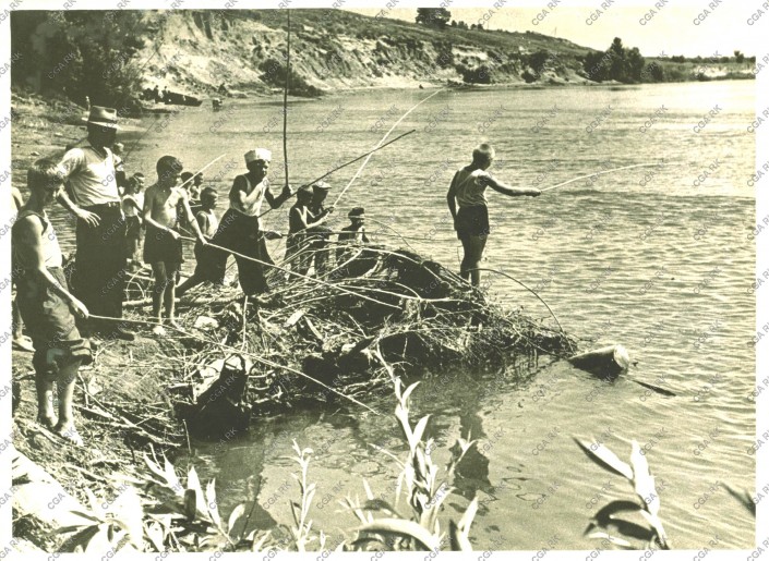 Одно из любимых занятий детей - рыбалка. Пионерский лагерь Кустанайского обкома профсоюза медработников, 1955 год. Из фондов Центрального государственного архива Республики Казахстан