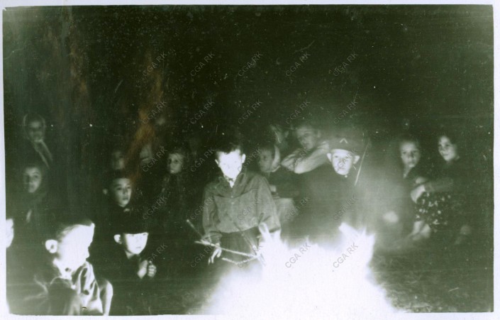 Беседы у костра. Пионерский лагерь Кустанайского обкома профсоюза медработников, 1956 год. Из фондов Центрального государственного архива Республики Казахстан