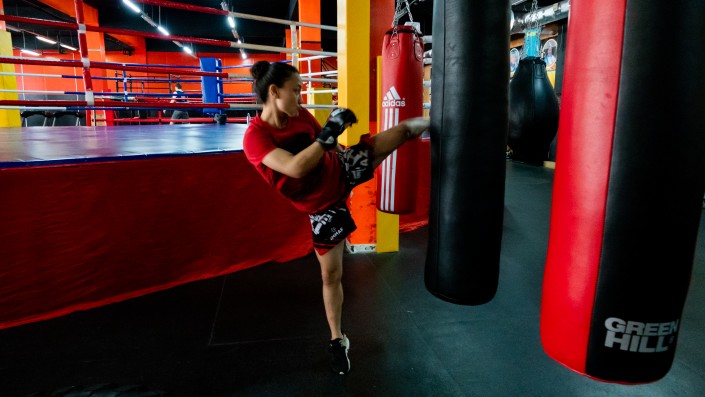 В ММА Аян пришла с тремя подругами. В зале тренировались только парни, они удивились, увидев, что девчонки решились заниматься таким беспощадным видом спорта.