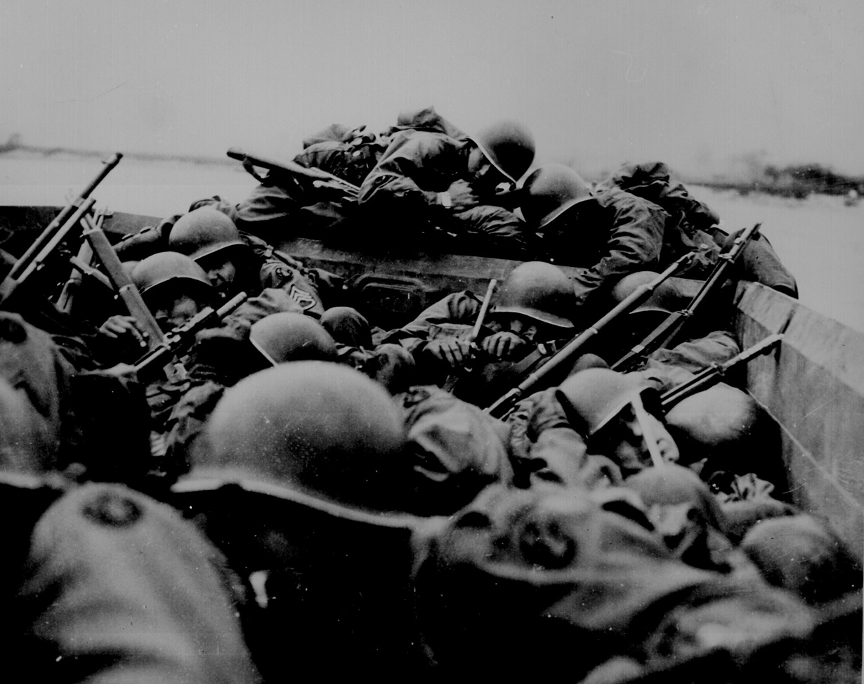 Десантная операция на острове Рендова, архипелага Соломоновы острова, 30 июня 1943 года. Американские солдаты прячутся за пальмами - в единственном возможном укрытии.