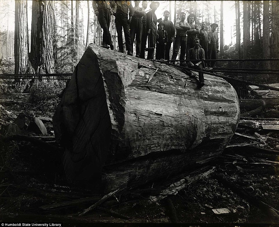 Университет имени Гумбольдта в штате Калифорния представил редкие фотографии, на которых запечатлена работа лесорубов на северо-западе штата, где произрастают гигантские секвойи. Снимки сделаны в 1915 году шведским фотографом Эриксоном (A.W. Ericson). Как видно, в то время лесорубам приходилось валить деревья с помощью нехитрых инструментов, а сборка бревен осуществлялась тягловой силой.