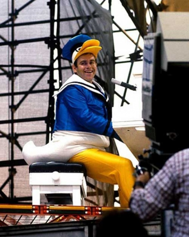 Элтон Джон выступает в костюме Дональда Дака, 1980 год.