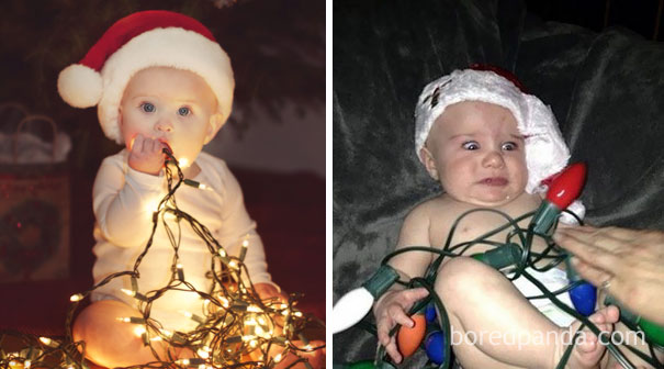 Вам стоит посмотреть на эту подборку из серии "Ожидание и реальность", чтобы понять, что не всегда все идет по плану. Это же дети! С другой стороны - даже неудачные снимки могут быть очень забавными, сохраните их на память.