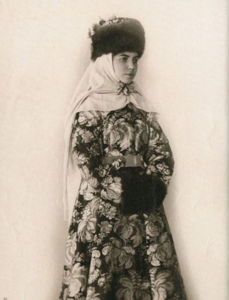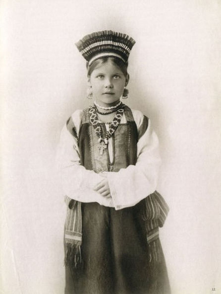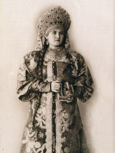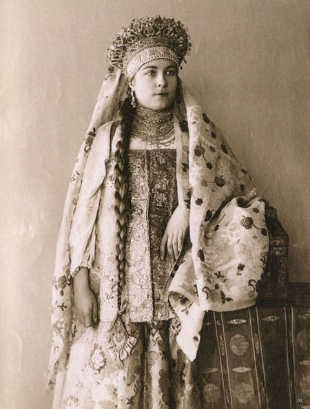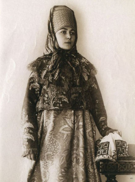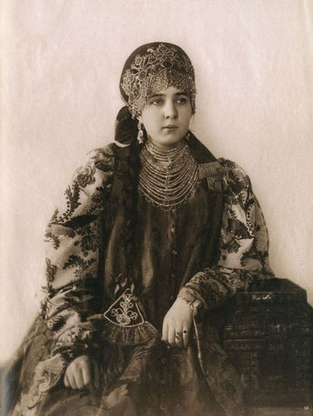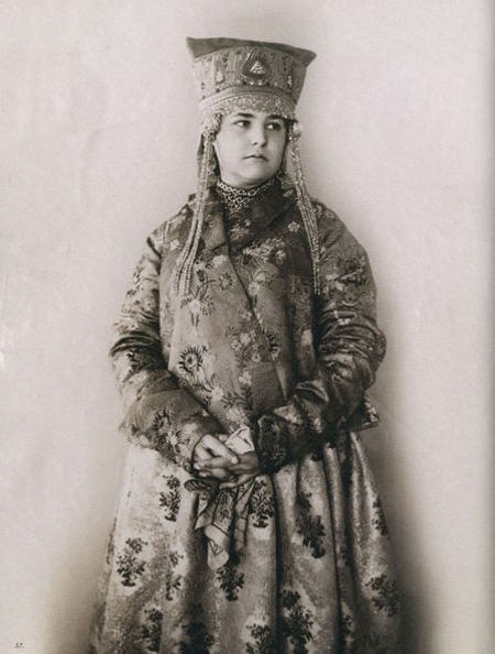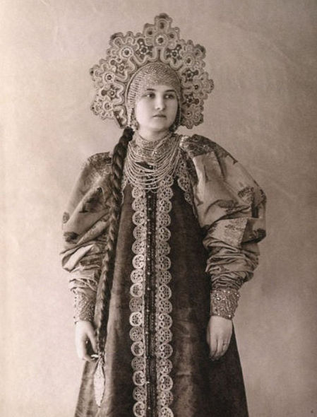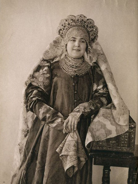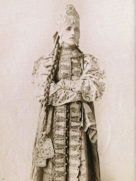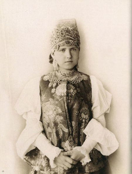 В 70-80-е годы XIX века среди русской интеллигенции проснулся живой интерес к традиционной культуре допетровской России. Многие стали собирать коллекции предметов быта тех времен. Одним из таких коллекционеров стала Наталья Леонидовна Шабельская, прекрасно образованная женщина, жена крупного землевладельца. После посещения вместе с семьей Нижегородской ярмарки в 1870-е годы она, очарованная красотой русской старины, решила организовать собственную коллекцию. Через несколько лет усердной работы Шабельская открыла в Москве "Музей старины". К 1904 году он насчитывал более 20 тысяч экспонатов, среди которых были старинные русские костюмы (крестьянские, купеческие, городские, старообрядческие) всех губерний России, головные уборы, шерстяные и шелковые платки, образцы старинных вышивок, прялки, пряничные доски и игрушки. С середины 1890-х годов сотрудники музея начали фотографировать экспонаты. Фотоколлекция, создававшаяся прежде всего для запечатления предметов одежды, стала самостоятельным феноменом в истории русской фотографии. В роли моделей выступали дочери Шабельской Наталья и Варвара и, вероятно, вышивальщицы из мастерской коллекционера. Основой образов служат сарафан и кокошник. Студийные снимки прекрасно передают выразительный образ русской женщины, а модели удивительным образом гармонируют с костюмами. В настоящее время большая часть этой коллекции хранится в фотоархиве Российского этнографического музея.
