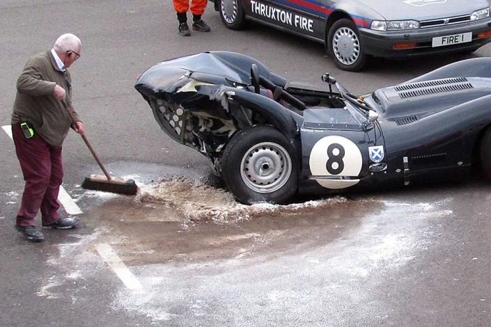 За рулем Mercedes был знаменитый немецкий пилот Йохен Масс. Он не смог объехать резко затормозившего британца Тони Вуда на Lister-Jaguar. Последний едва не загорелся (у него был поврежден топливный бак), а 300 SLS "отделался" разбитым передком.