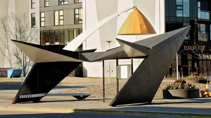 Эта остановка испанских архитекторов Антона Гарсии-Абриля и Деборы Мессы представляет собой наложенные друг на друга дубовые доски.