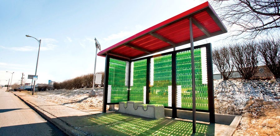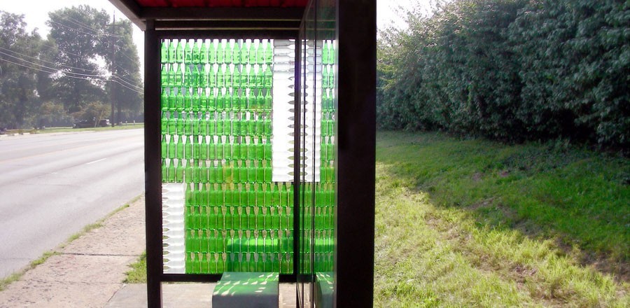 Эта остановка, созданная студентом Университета Кентукки Аароном Скейлсом, состоит из бутылок из-под газировки, оснащенных мощными светодиодными лампочками.