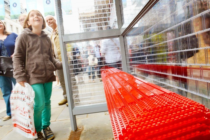 Все здесь, включая подпись, сиденья и прозрачную стену, создано из деталей конструктора ЛЕГО.
