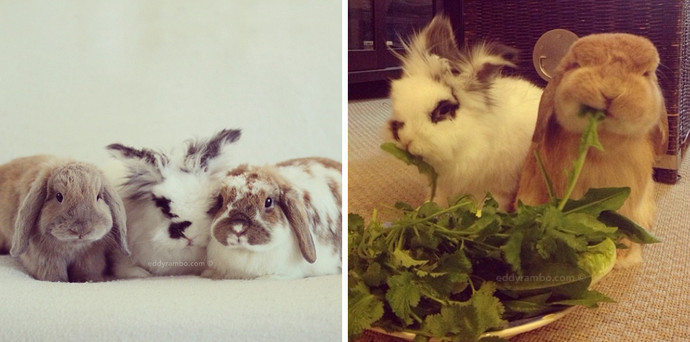 Трио разношерстных карликовых кроликов (@BUNNYMAMA)