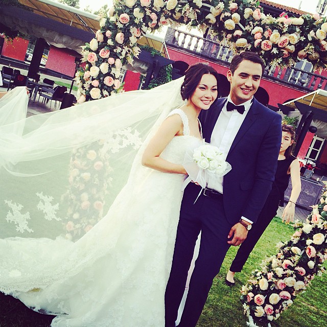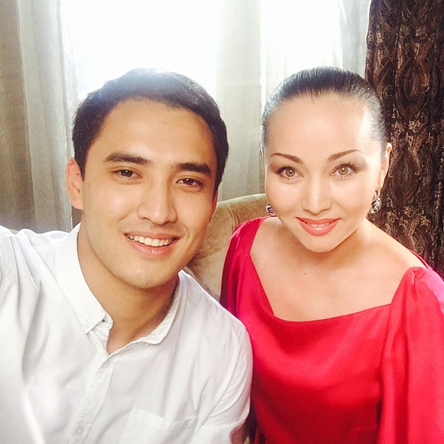 Баян Есентаева с актером из сериала "Махаббат журегимде"