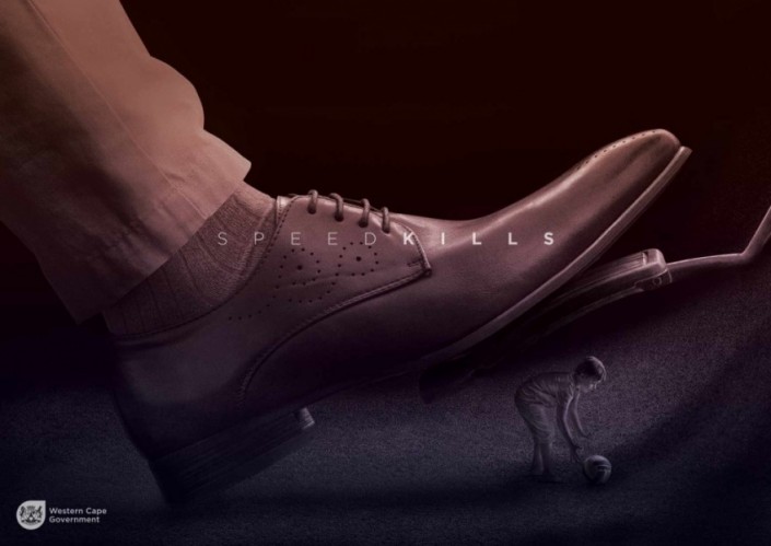 "Скорость убивает" - этот слоган, который неоднократно использовался в социальных кампаниях. Рекламное агентство Western Cape Government дополнило идею картинкой.