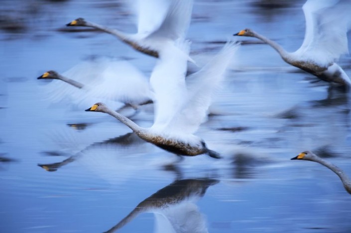 Фотографу удалось заснять, как лебеди скользили по воде в Кабукуринуме, Осака, Япония. "Я был особенно впечатлен лебедями и старался не беспокоить их при съемке. Я принял во внимание направление ветра и скорость затвора, чтобы уловить силу и элегантность их взмахивающих крыльев", - отметил он.