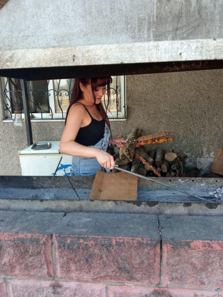 "У нас работал парень, но я захотела сама лично жарить шашлык. И много людей заходят именно потому, что я жарю шашлык, так что я решила, что буду сама этим заниматься", - сказала она.