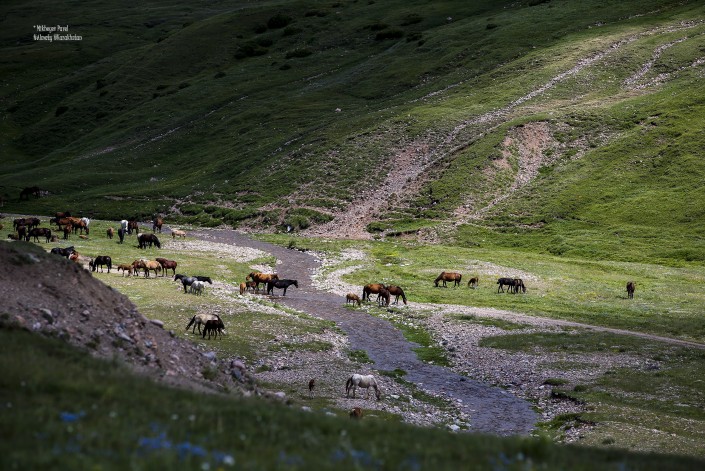 Лошадиная семья. Плато Ассы-Тургень в Заилийском Алатау.