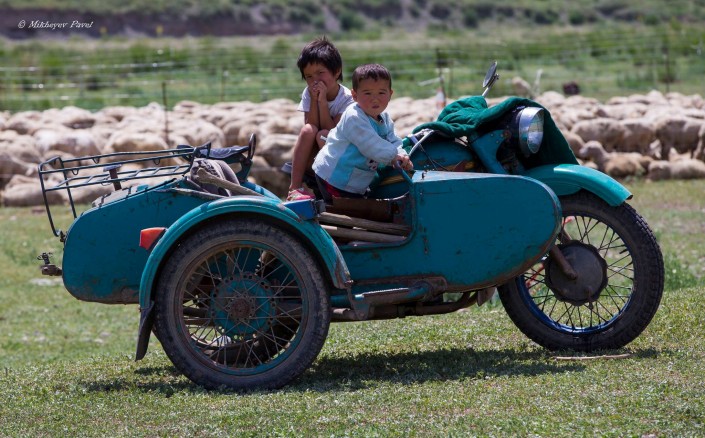 Обратите внимание на фон. Маленькие чабаны на мотоцикле. Поселок Кататерен.