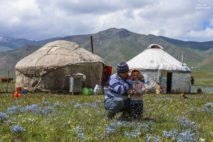 "На фото мужчина поправляет девочке волосы, стараясь причесать ее. Они сюда только приехали. Чабаны начали пригонять скот, благоустраивать жилища. Обычно здесь очень много юрт. В этом году я собираюсь заглянуть к ним снова. Думаю снять документальный очерк о кочевой жизни", - делится собеседник.