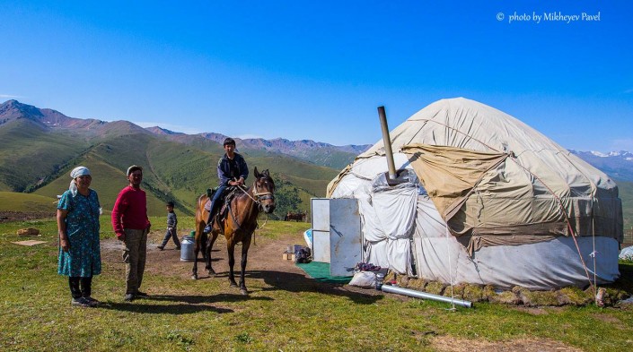 В этой юрте на высокогорном плато Ассы-Тургень гостил Павел. На прощание он сделал памятные фотографии для хозяев очага. Дочь и отец с радостью ему позировали.