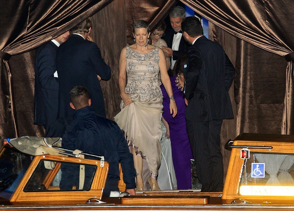 В красном пиджаке - Анна Винтур, главный редактор модного журнала Vogue, получившего эксклюзивные права на фотографии со свадьбы. За первые снимки молодоженов журнал заплатил полтора миллиона долларов.