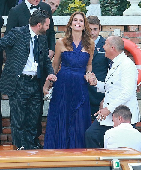 На свадьбу приехала бывшая возлюбленная Клуни модель Синди Кроуфорд с мужем.