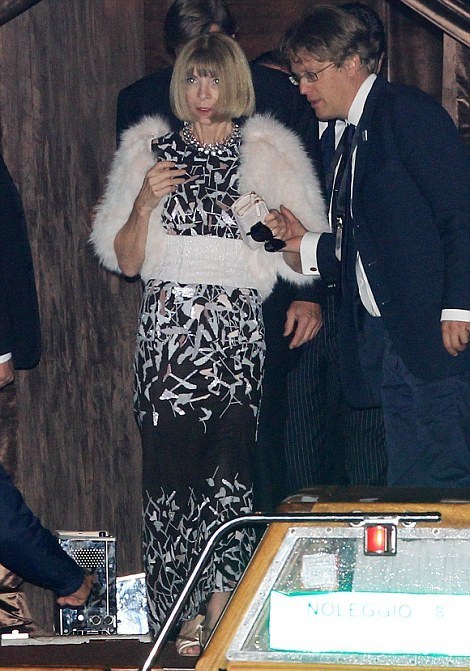 Главный редактор журнала Vogue выходит из отеля Cipriani.