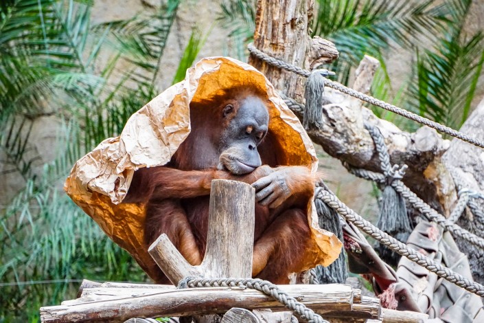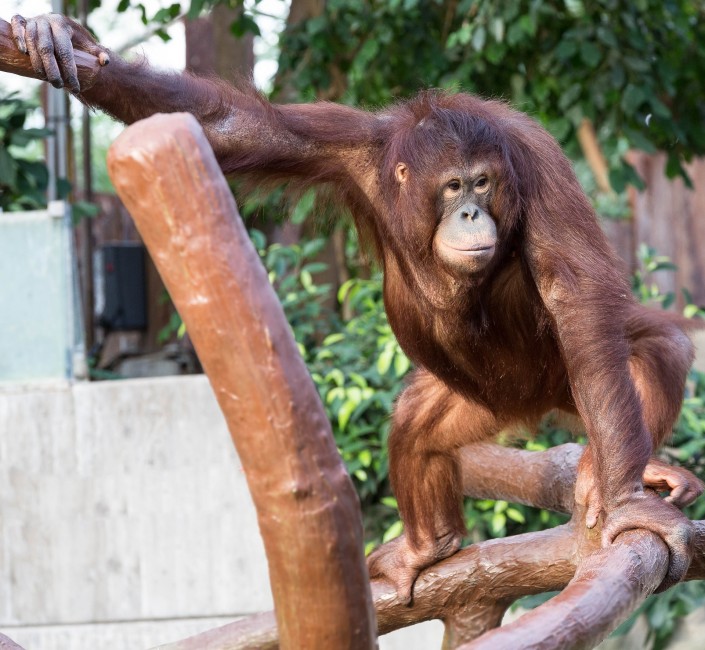 Тогда орангутаны направляются в безопасное место, передвигаясь по деревьям. "Для передвижения взрослые приматы используют вес тела, прыгая с ветки на ветку. Однако легкий вес детенышей не позволяет сгибать ветки и перемещаться, поэтому мамы создают так называемые живые мосты и переправляют детей", - объясняет специалист по приматам.