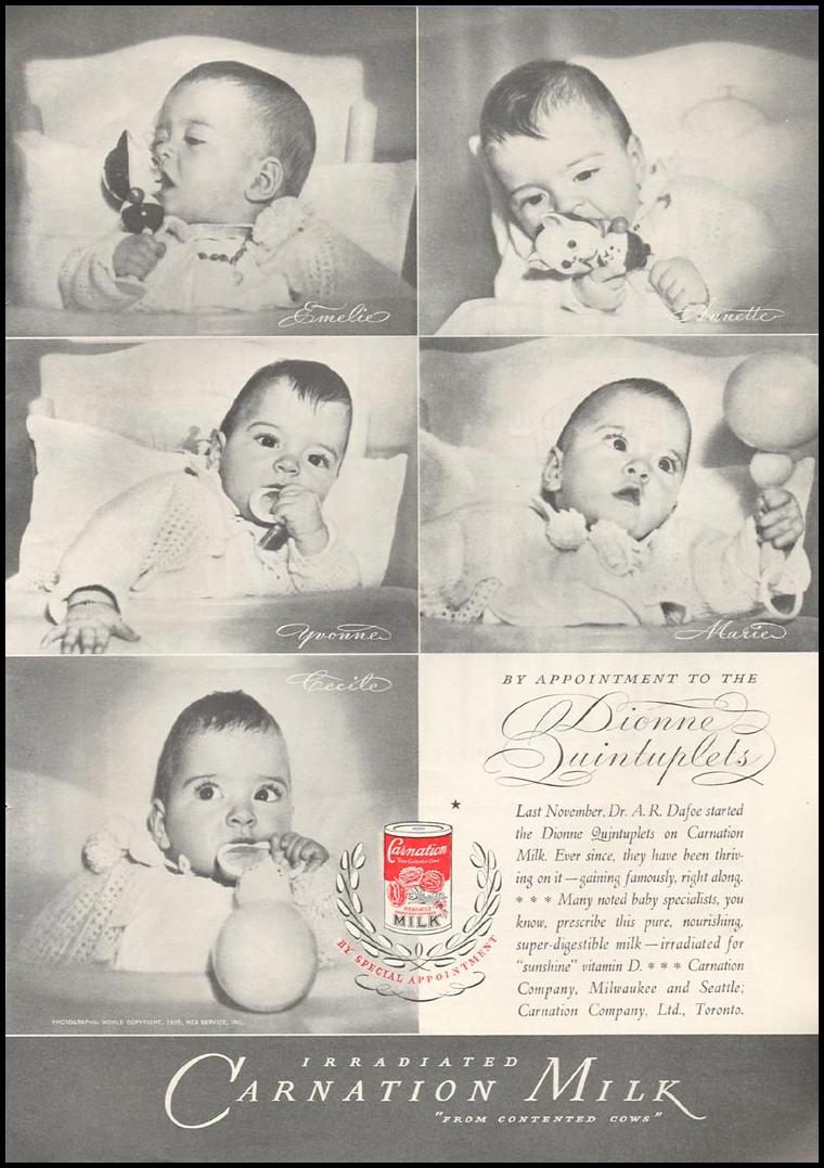 Сразу после появления на свет недоношенных малышек завернули в подогретые одеяла и поставили согреваться в корзине у плиты. Молока у матери не было, поэтому каждые два часа им давали смесь из воды, кукурузного сиропа, коровьего молока и пары капель рома. На фото: премьер-министр Онтарио Митчелл Хепберн с младенцами Дион, 1934 год.