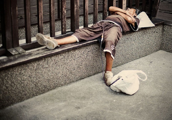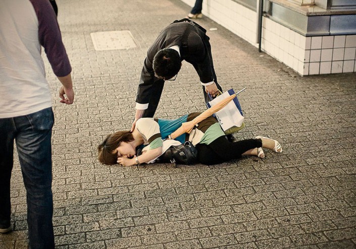 Фотограф Адриан Стори решил показать всему миру нелегкую жизнь работников в Стране восходящего солнца и создал серию фотографий, на которых запечатлел несчастных японцев, измотанных бесконечной работой и побежденных сном в вовсе не предназначенных для этого местах.