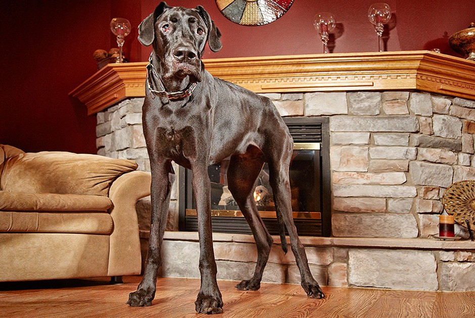 Дог Зевс из Мичигана считается самой высокой в мире собакой. Его рост в холке составляет 1,12 метра, а вес - около 70 килограммов. В день животное съедает 14 килограммов корма.