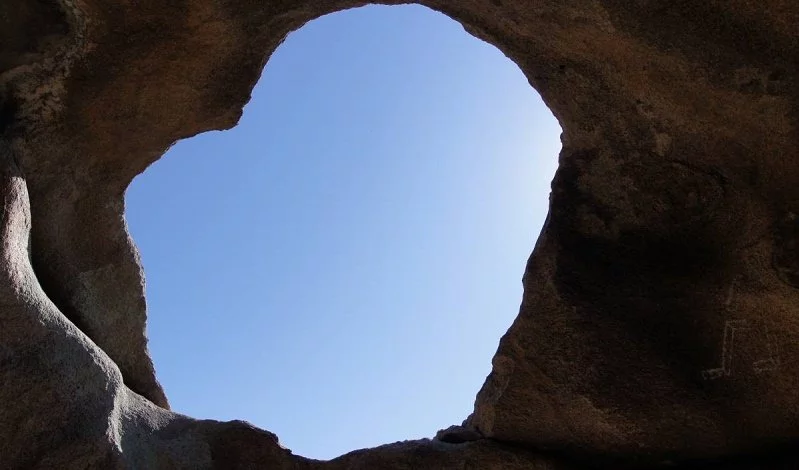 В урочище Ак-Баур в Восточном Казахстане есть такое чудо - природное отверстие "крыши" грота в виде сердца. Оно имеет следы обработки, возможно, оно было подправлено человеком, который сделал выступ-мушку для фиксации движения основных созвездий ночного неба.