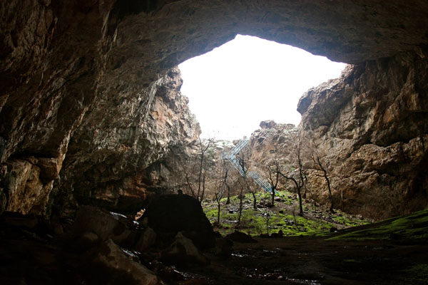 Подземная пещера в Южно-Казахстанской области, которую также называют "Акмешит Аулиенской". Это очень удивительное место. На дне пещеры растут огромные платаны и зеленая травка. Внутри летают птицы. К тому же, в "Акмешит" в любое время года практически одна и та же температура.