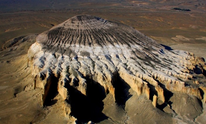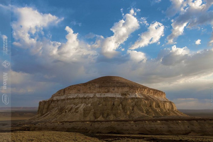 Плато Устюрт - идеальная пустынная равнина, расположенная на западе Казахстана, между Аральским и Каспийским морями. Плато подобно Большому Барьерному Рифу хорошо видно из космоса. Суммарная протяженность цепи устюртских чинков составляет несколько сотен километров.