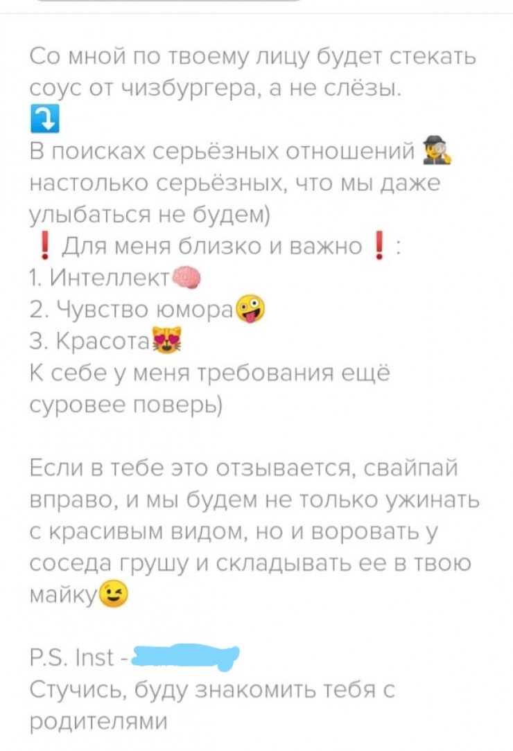 А здесь автор утверждает, что суров не только по отношению к потенциальным партнерам, но и к себе.