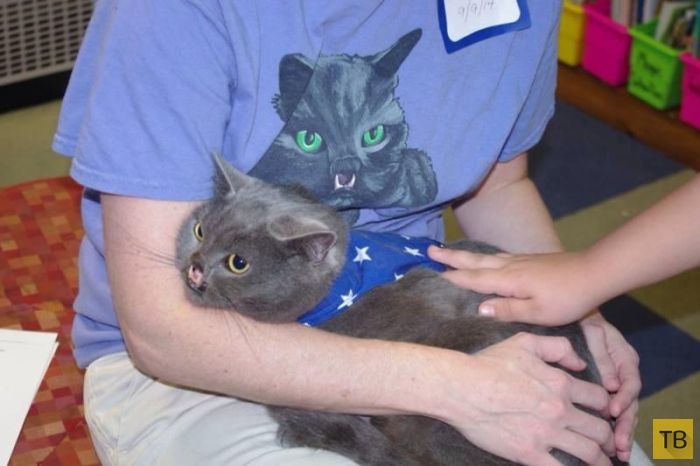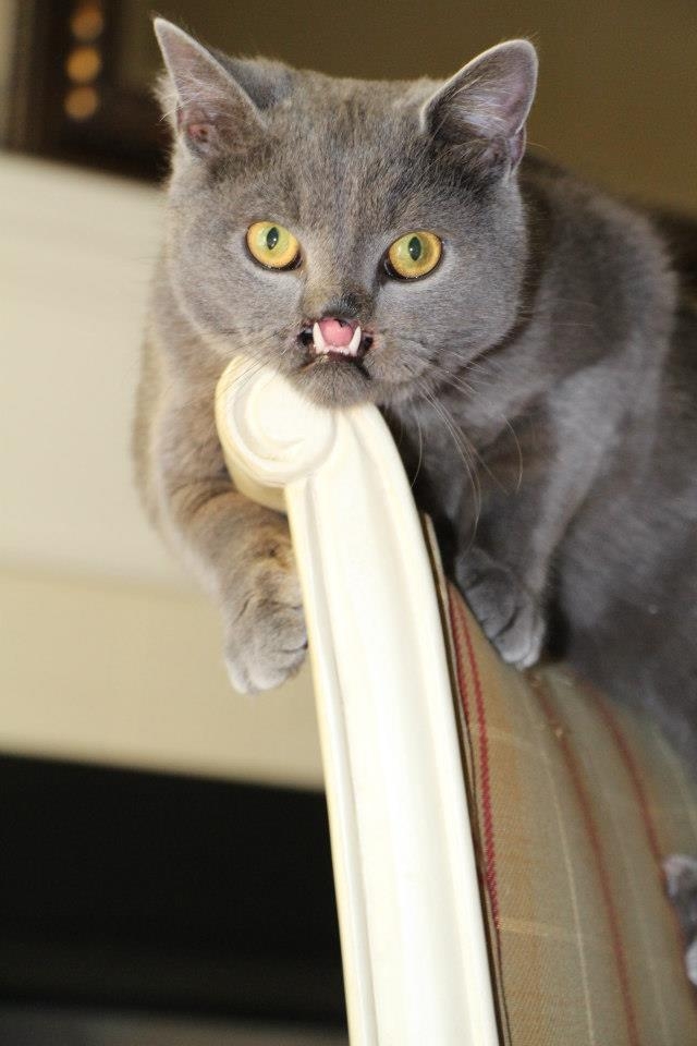 Торчащие клыки создают впечатление, что Лазарь свирепый кот, но услышав его тонкое мяуканье, это чувство тут же исчезает.