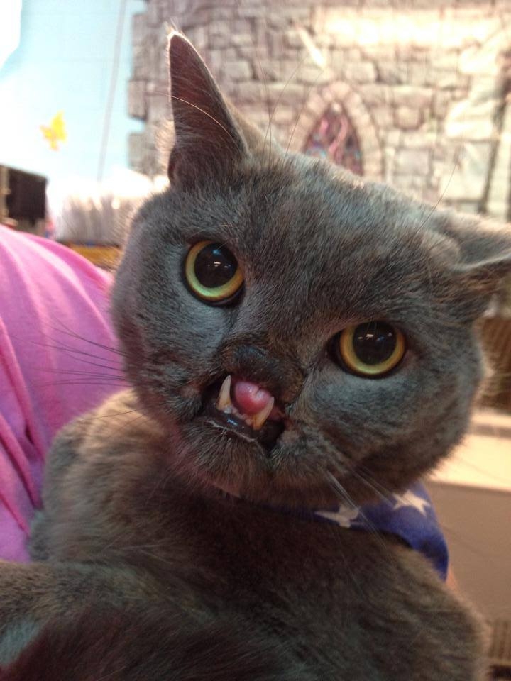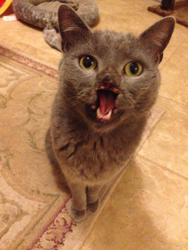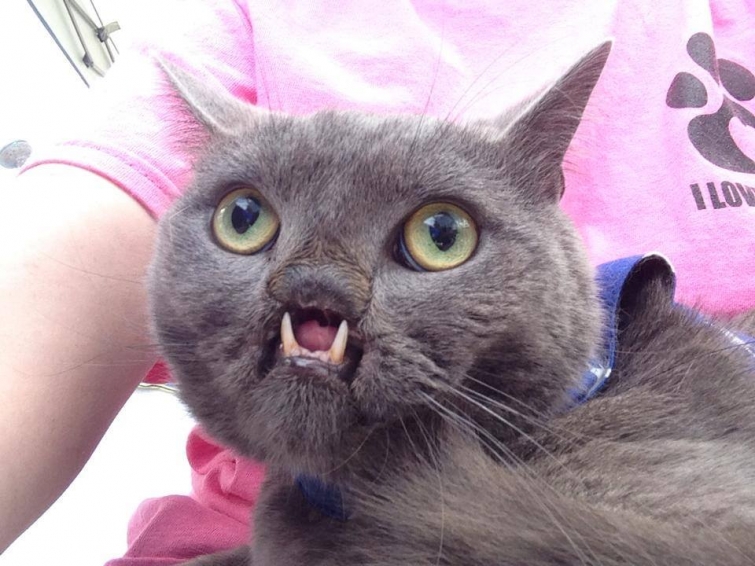 На самом деле не обязательно обладать внешностью неописуемой красоты, чтобы быть звездой и в доказательство этих слов мы предлагаем вашему вниманию историю о "вампирском" коте по кличке Лазарь, чья внешность колоссально отличает его от среднестатистического кота. Самая главная отличительная особенность Лазаря - волчья пасть, оставившая его без части носа и верхней губы, обнажив все зубы.