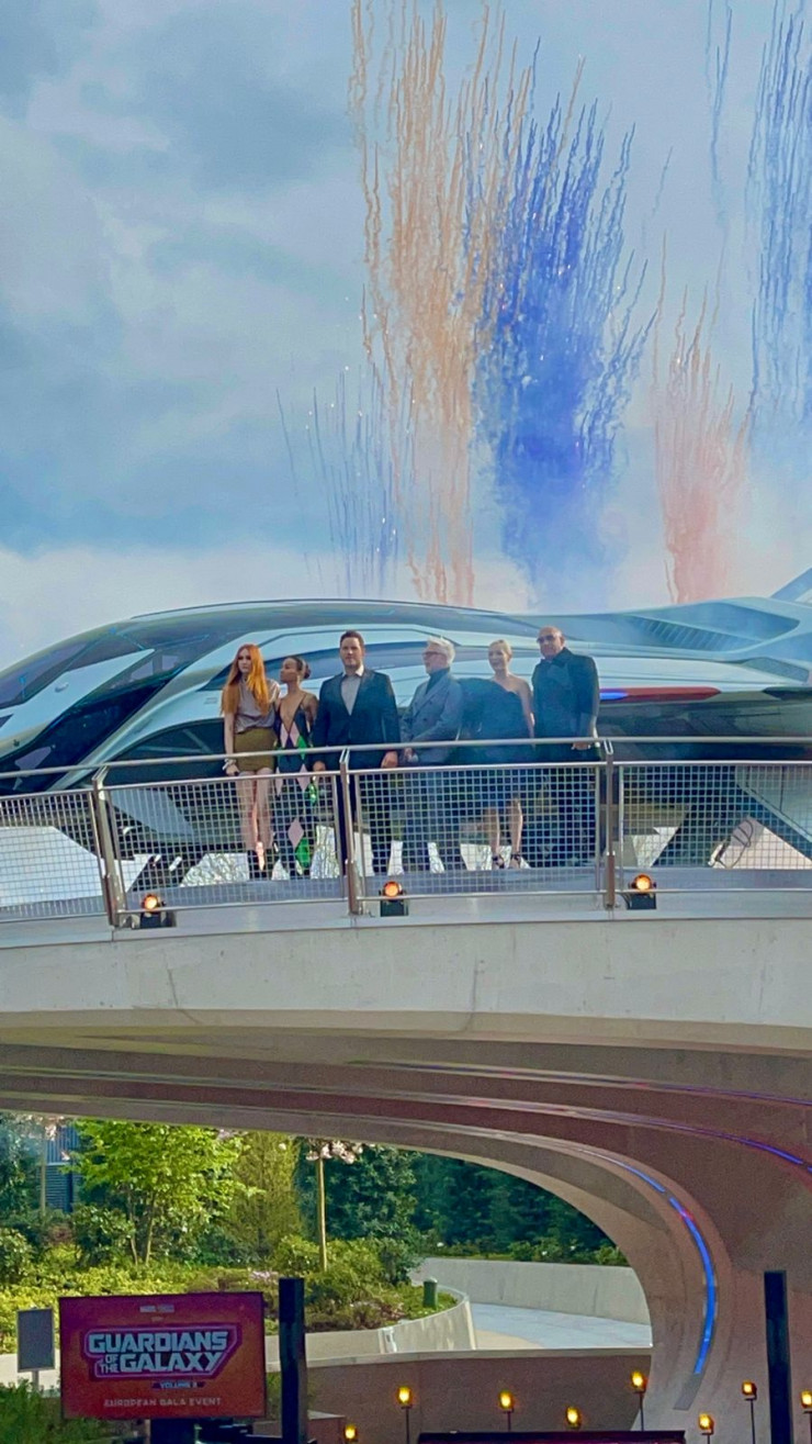 Грандиозное представление "Стражей Галактики 3" организовали на центральной площадке территории, где главным атрибутом значится Квинджет - культовый самолет Мстителей.