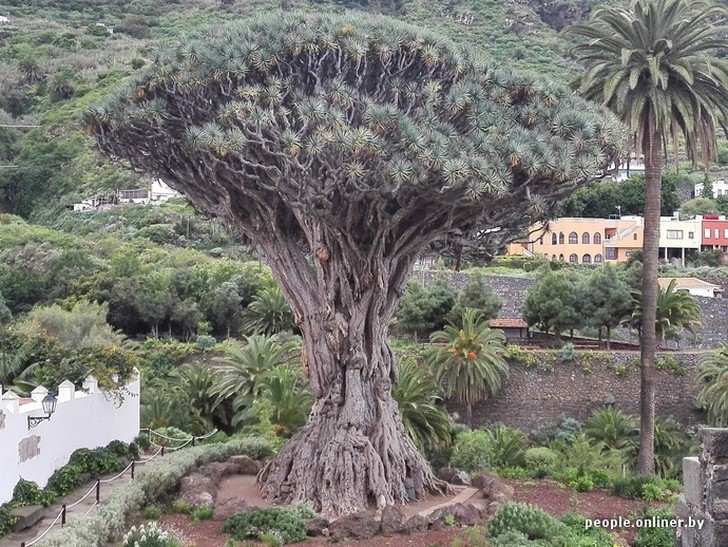 Дважды мы катались вокруг острова по горному серпантину. Первый раз ездили в провинцию Икод-де-лос-Винос, где делают местное вино "Мальвазия" и находится самое старое на острове драконовое дерево, которому предположительно около 2,5 - 3 тысячи лет. Там есть Parque del Drago. Стоимость входа - около 5 евро, но мы пробрались бесплатно, есть и обходные пути. Заглянули также в национальный парк Тейде.