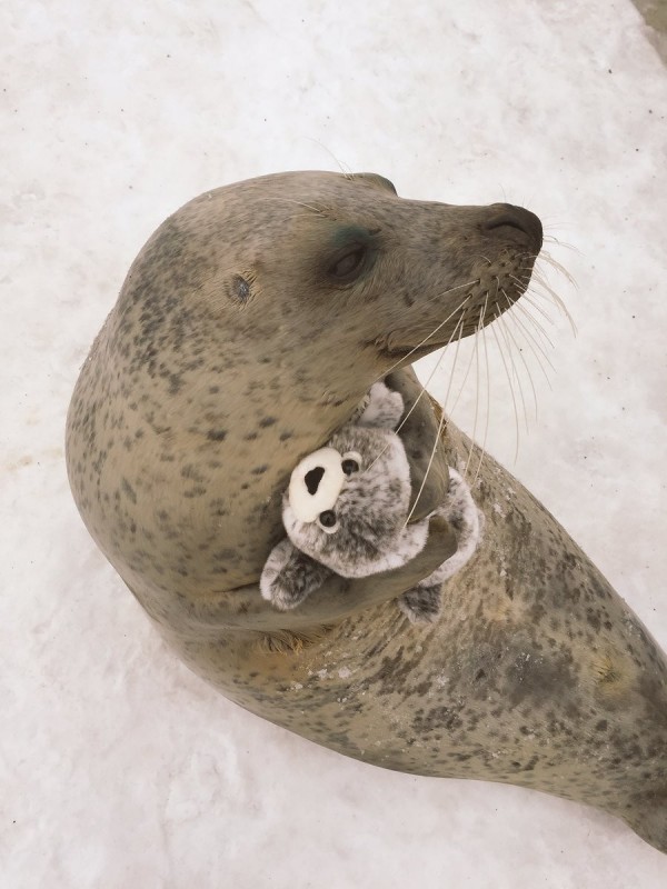 Эти фотографии были опубликованы в Twitter зоопарка японского города Момбецу. На них тюлень развлекается с новой игрушкой: обнимает ее и катает на спине. Своеобразный подарок животному сделали сотрудники зоопарка.