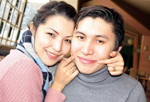 Солист группы Rin'Go Аян Бирбаев и его жена Айнур