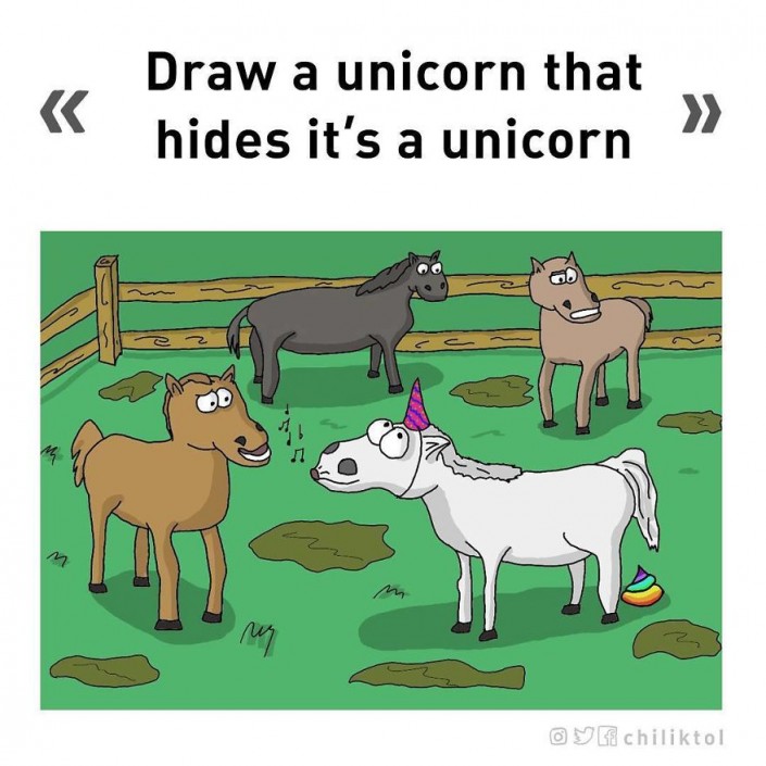 "Нарисуй единорога, скрывающего, что он единорог"