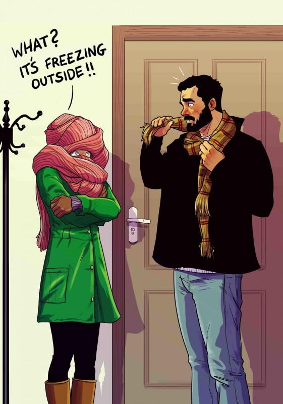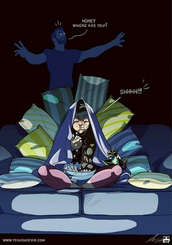 Иегуда Девир из Тель-Авива создает чудесные комиксы о ежедневных домашних приключениях со своей супругой Майей. Каждый день иллюстратор черпает вдохновение в повседневных ситуациях и переносит их на бумагу.