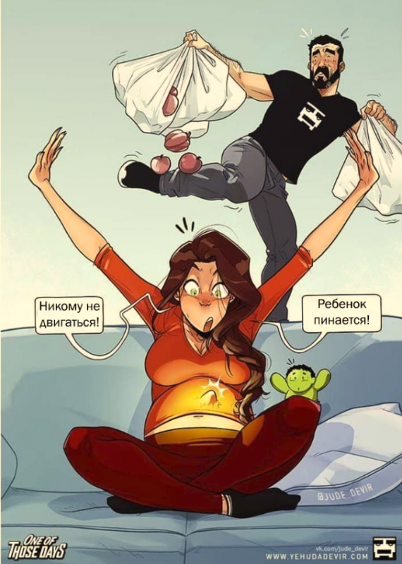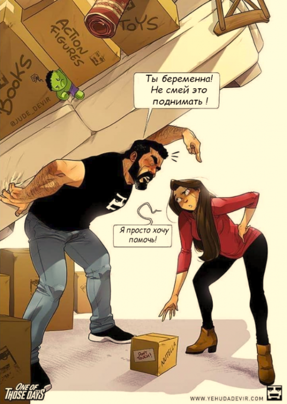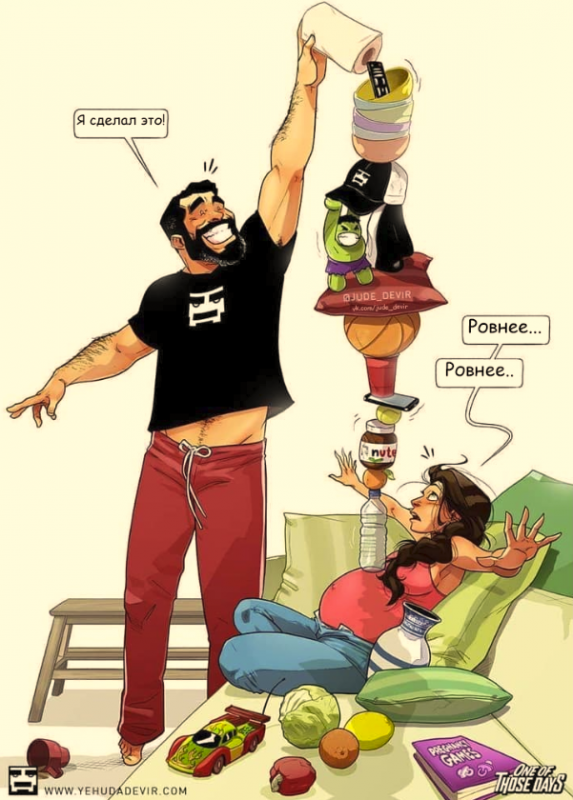 Самое большое счастье в жизни супружеской пары - стать родителями. С появлением детей семейные узы крепчают. Влюбленные понимают, что несут ответственность не только друг за друга, но и за чадо, которое не перестает радовать и удивлять. TengriMIX продолжает делиться забавной серией комиксов израильского художника Иегуды Ади Девара.