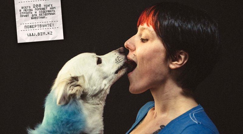Креативщики рекламного агентства Openeyes DDB решили высмеять шум, возникший вокруг постера с поцелуем Курмангазы и Пушкина и запустили кампанию по сбору средств на содержание приюта для бездомных животных "Белый бим". На своих плакатах они изобразили поцелуй собаки и человека.