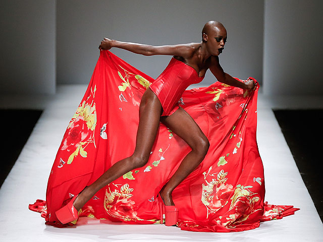 Показ привлек внимание журналистов не только благодаря необычным находкам кутюрье, но и множеством случаев падения моделей.