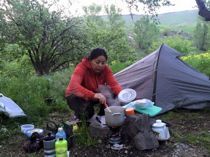 Кстати, во время путешествий за плечами у Акмарал, конечно, рюкзак со всем необходимым: пауэрбанк, телефон, насос для шин, запасные части, теплая одежда, спальный мешок, палатка. Она также возит с собой горелку и продукты.