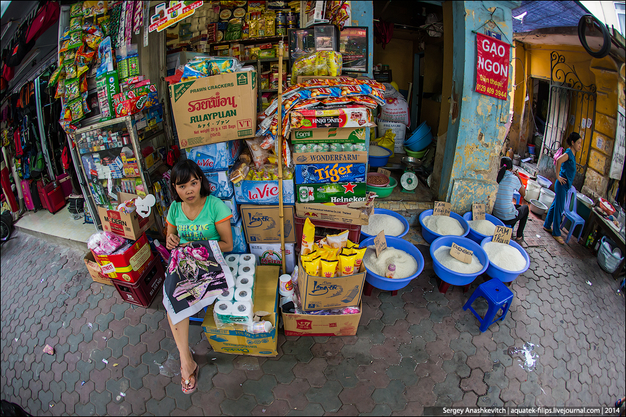 Улица наполнена не только людьми и мотобайками, но и тысячами голосов и восклицаний - вьетнамцы очень много и активно говорят, что-то кому-то предлагают, рассказывают, убеждают и зазывают. Только попробуй остановиться около кого-то, кто чем-то торгует, как тут же тебе попытаются продать все что только можно. Торговля для многих вьетнамцев - их единственный хлеб.