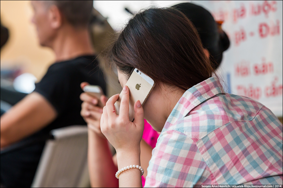 Айфон для простых вьетнамцев - особый фетиш. Для людей, у которых средний доход равен примерно 100 долларам, обладать телефоном стоимостью под 800 долларов - признак успешности и высокого благосостояния.