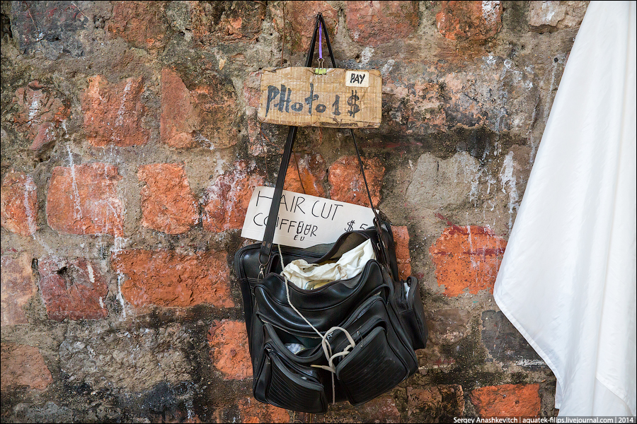 Однодолларовый салон. Здесь все совершенно просто - прямо на улице ставится стул, на любую стену вешается зеркало и все - парикмахерская готова!