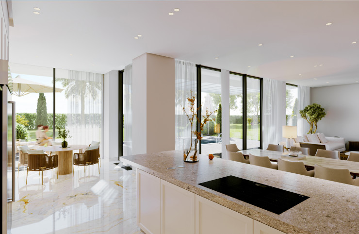Виллы будут обеспечены системой "умный дом" от Connected Home. Предусмотрены датчики протечки воды, температуры, открытия двери, голосовой ассистент, режим "выключить все", пожарное оповещение. По желанию владельцы смогут заказать полное оформление дома, включая мебель и освещение.