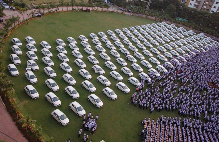 "Алмазный король" Индии Савджибхай Дхолакиа премировал своих лучших сотрудников. Миллиардер подарил им 1 260 машин, 400 квартир и драгоценные украшения на сумму семь миллионов долларов, сообщает The Times of India.